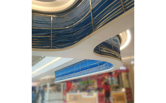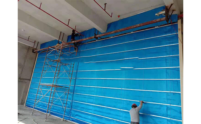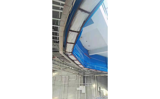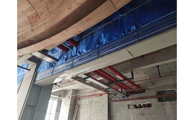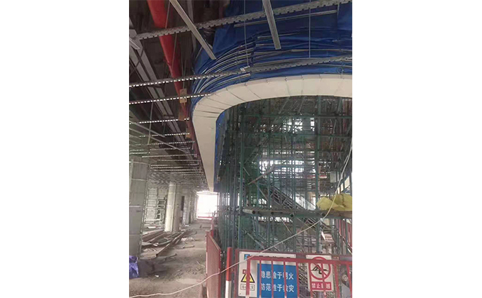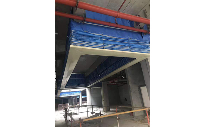 擋煙垂簾垂壁根據(jù)設(shè)計要求和現(xiàn)場實際情況采取如下施工順序:首先,搭設(shè)腳手架一放線一打眼--上脹栓一焊骨架。第二,吊件一安裝骨架…